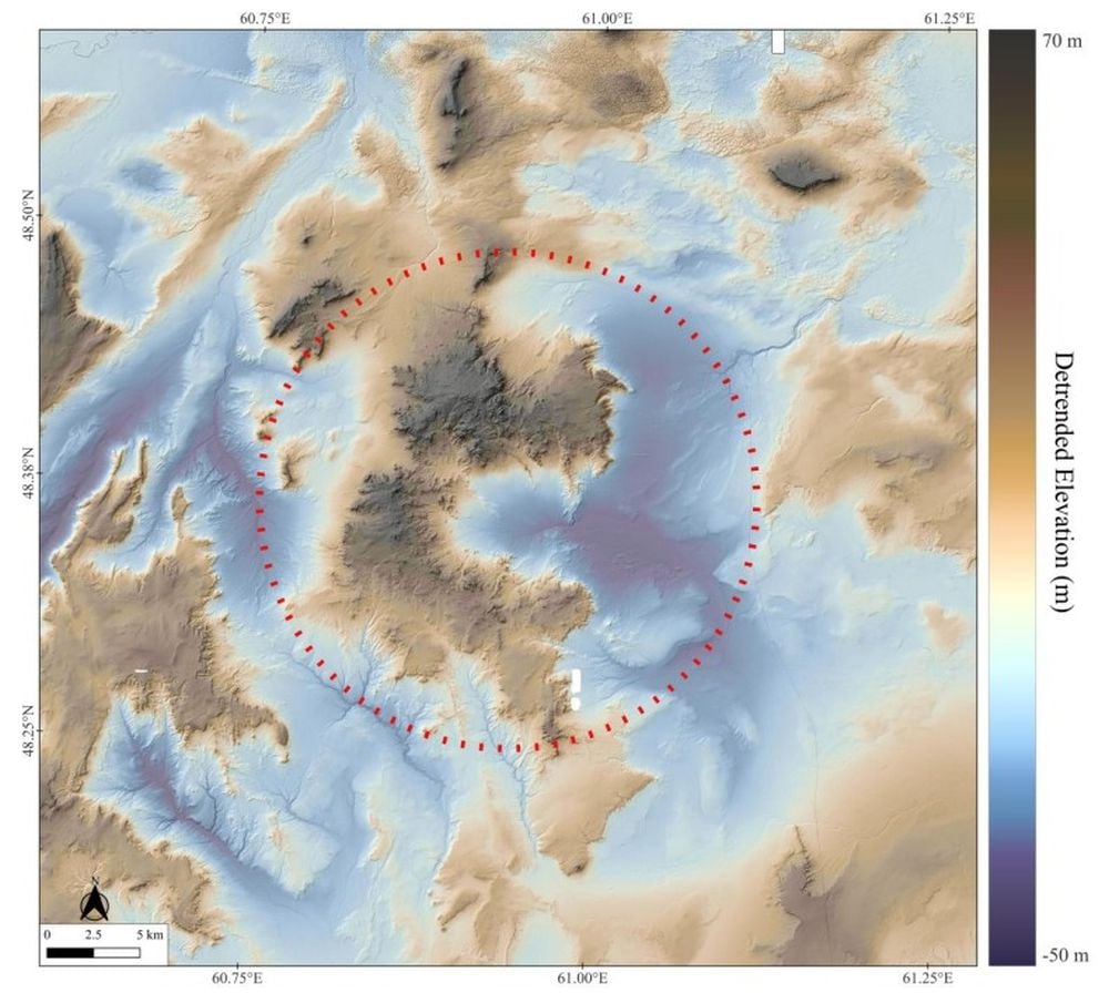 The Zhamanshin impact crater is located in Kazakhstan. Image Credit: Garvin et al. 2026. PSJ.