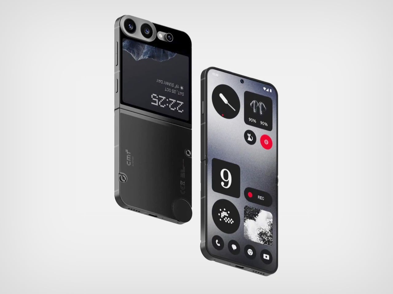 Onial’s CMF Flip channels the CMF’s design fairly effectively with zero compromise. The camera bump merges older and newer phone styles (with 3 lenses like the Phone 2 Pro), laid out horizontally now to make space for a 4:3 secondary screen. It isn’t inconceivable to imagine that CMF would pack this phone with the same sensors as the Phone 2 Pro underneath too, two 50MP main shooters along with an 8MP Ultra-wide third camera. After all it would make way more sense to just use the same hardware to help keep the cost of goods in check.