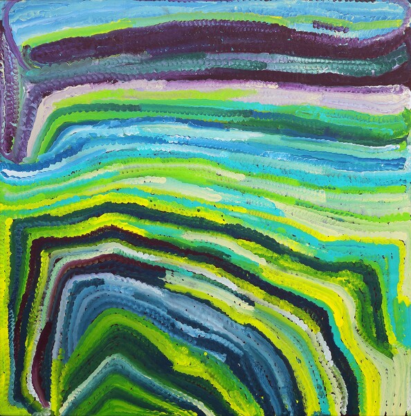 “Wantili,” by Bugai Whyoulter, 2014, depicts elements of the Pilbara region of Western Australia.