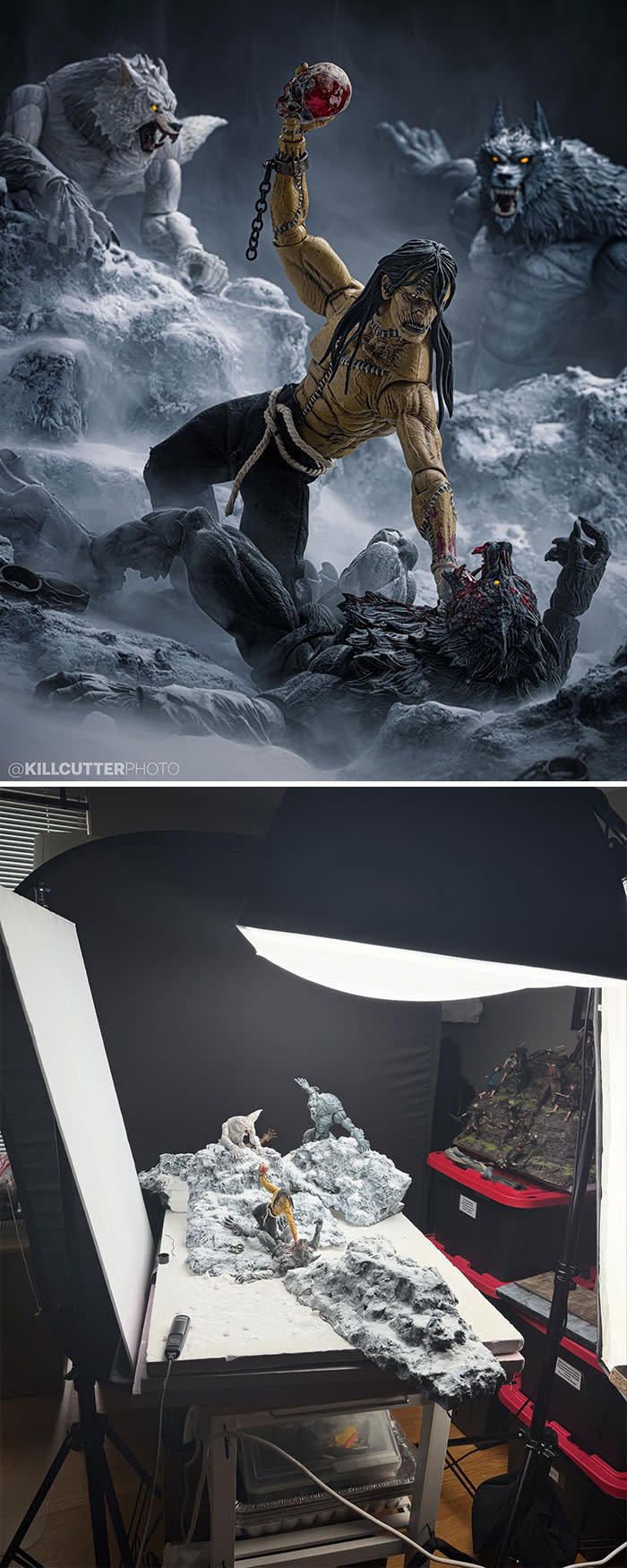 If you’ve ever looked at an action figure and thought it belonged in a movie, Chuck Eiler is already several steps ahead. Better known as Killcutter, this Chicago-based artist creates elaborate toy photographs that turn plastic characters into the stars of gritty, cinematic scenes. Using handcrafted dioramas, practical effects, carefully controlled lighting, and a keen eye for composition, he recreates memorable moments from film and TV while also inventing mashups that feel both surprising and strangely believable.