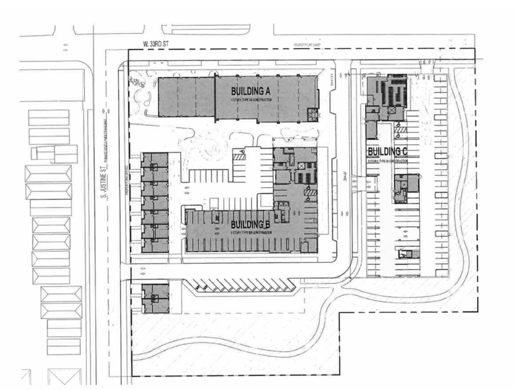 New details have been revealed for the mixed-use development known as Bridgeport Crossing at 3301 South Justine Street in McKinley Park. Located at the intersection with West 33rd Street, the multi-building development was first unveiled just over a year ago and will replace a large former industrial site steps away from Bubbly Creek.