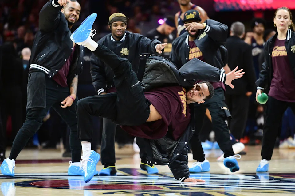Moondog performs during the first quarter of game one in the first round of the 2026 NBA Playoffs between the Cleveland Cavaliers and the Toronto Raptors at Rocket Arena.