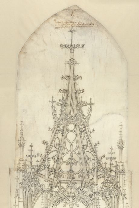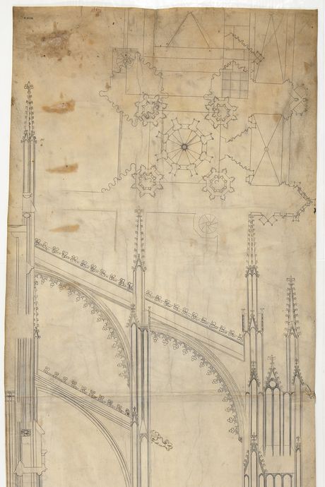 From top: Matthäus Böblinger (German, ca. 1450–1505): Design for a Mount of Olives Monument for the City of Ulm, 1474. Photo: Courtesy of The MetPeter Parler (German, ca. 1330–1399): Cross Section of the Northern Half of the Choir and Flying Buttresses of the Cathedral of Saint Vitus (Veitsdom), Prague, ca. 1360. Photo: Courtesy of The Met