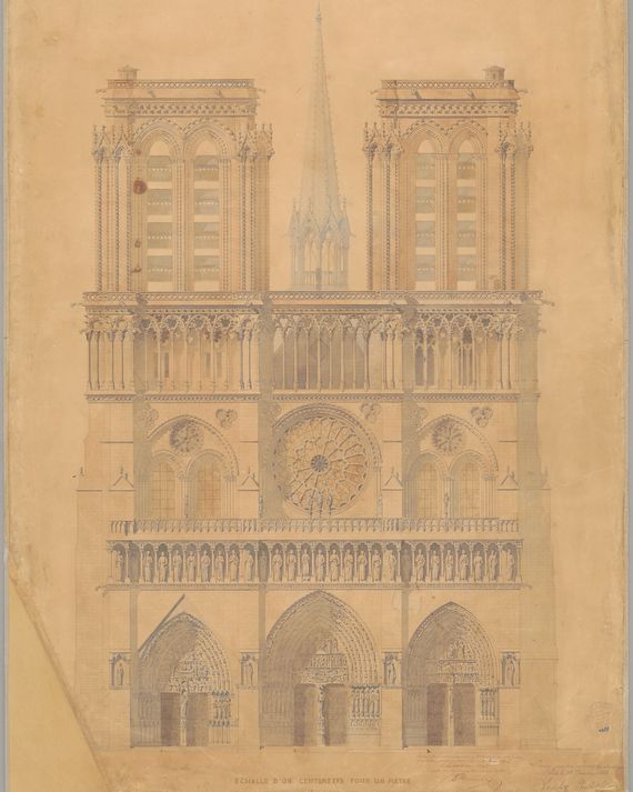 Eugène-Emmanuel Viollet-le-Duc; Jean-Baptiste-Antoine Lassus: South elevation of Notre-Dame de Paris, competition drawing, 1843.