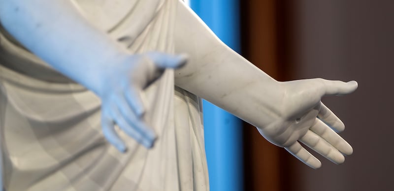 The hands of the Christus statue in the Conference Center during the Saturday afternoon session of the the 196th Annual General Conference of The Church of Jesus Christ of Latter-day Saints, at the Conference Center in Salt Lake City on Saturday, April 4, 2026. | Scott G Winterton, Deseret News