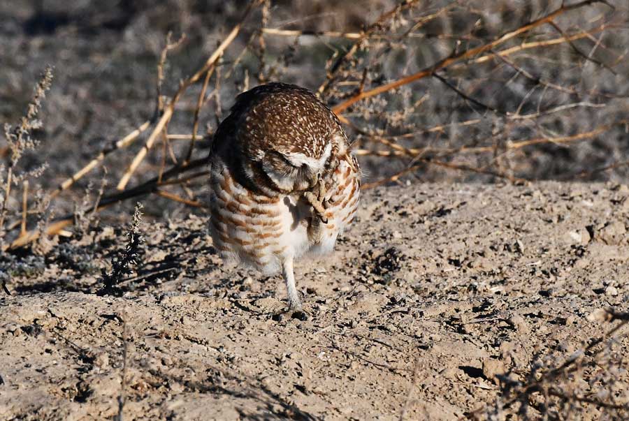 In my travels rock hunting this week, I saw four different owls standing on the lips of their burrows. They were all singles, but that does not mean the females are sitting on their nests; they may have been hunting or cleaning their underground digs, preparing to nest.