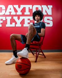 Marquette transfer Zaide Lowery poses for a photo during his visit to Dayton in April 2026. University of Dayton photo