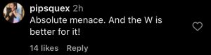 “Absolute menace. And the W is better for it!” a fan added.