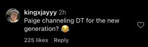 “Paige channeling DT for the new generation?” one comment read.