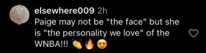 “Paige may not be ‘the face’ but she is ‘the personality we love’ of the WNBA!!!” another shared.