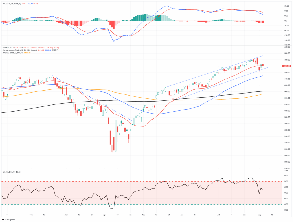 Yesterday, we noted the big reversal rally from Friday’s sell-off and suggested that the rally needed to maintain its hold above the 20-DMA. Despite better-than-expected results from Palantir (PLTR), the market reversed its early morning rally and closed lower for the day. Notably, the market bounced off the bottom of the rising trend channel on Monday and is flirting with support at the 20-DMA. While the previous overbought conditions were somewhat reversed with the correction, there is still some additional work to complete that process. Furthermore, the momentum “sell signal” remains intact, suggesting that increased volatility may be with us for a while longer.