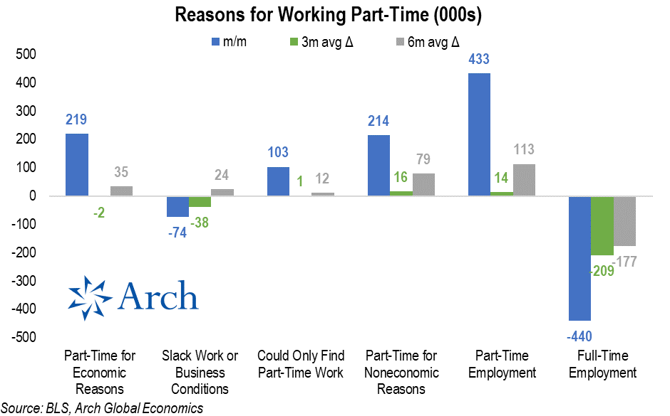 Workers are increasingly resorting to part-time work as full-time employment has trended lower.